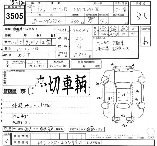 | A | UA-MC22S | K6A | FF | 4AT | 658cc | 54ps(40kW)/6500rpm | AИ-92 | 835 000 | |