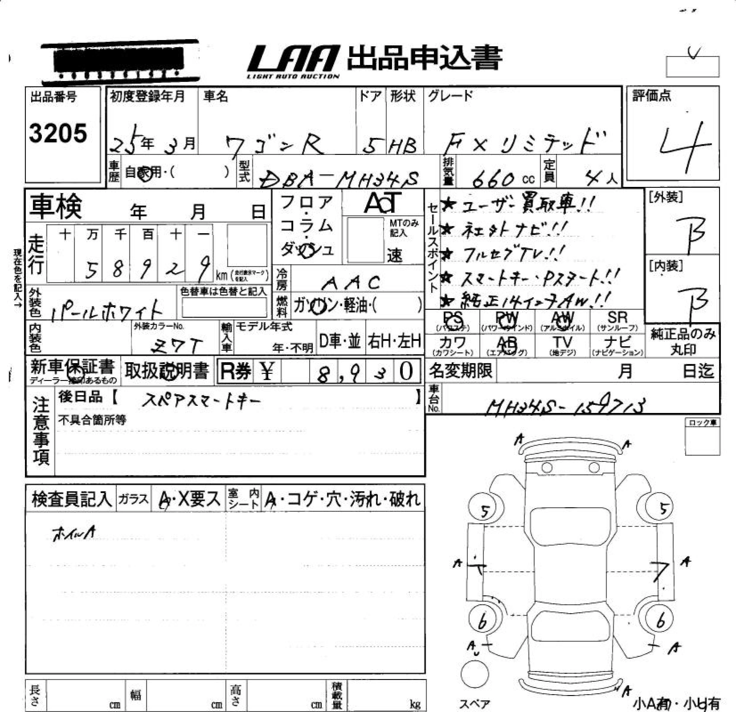 | FX LIMITED | DBA-MH34S | R06A | FF | CVT | 658cc | 52ps(38kW)/6000rpm | AИ-92 | 1 291 500 | |