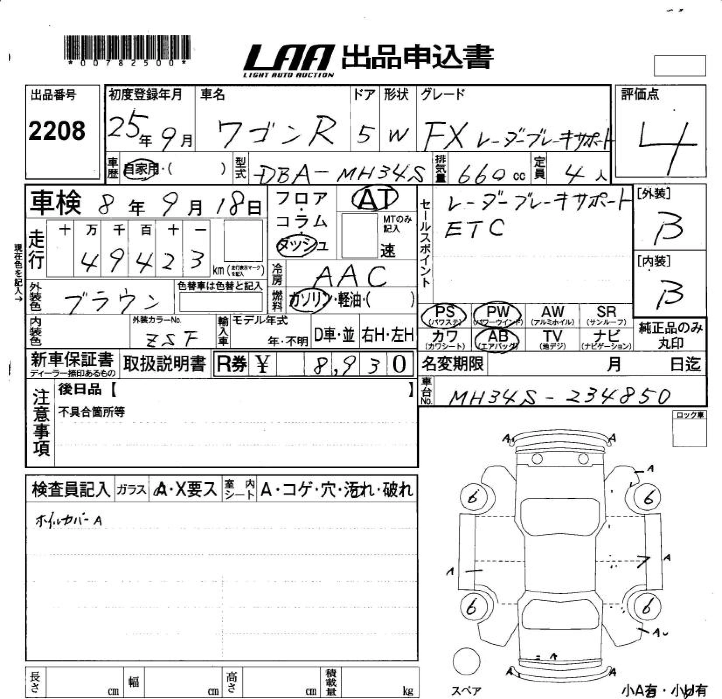 | FX LIMITED | DBA-MH34S | R06A | FF | CVT | 658cc | 52ps(38kW)/6000rpm | AИ-92 | 1 249 500 | |