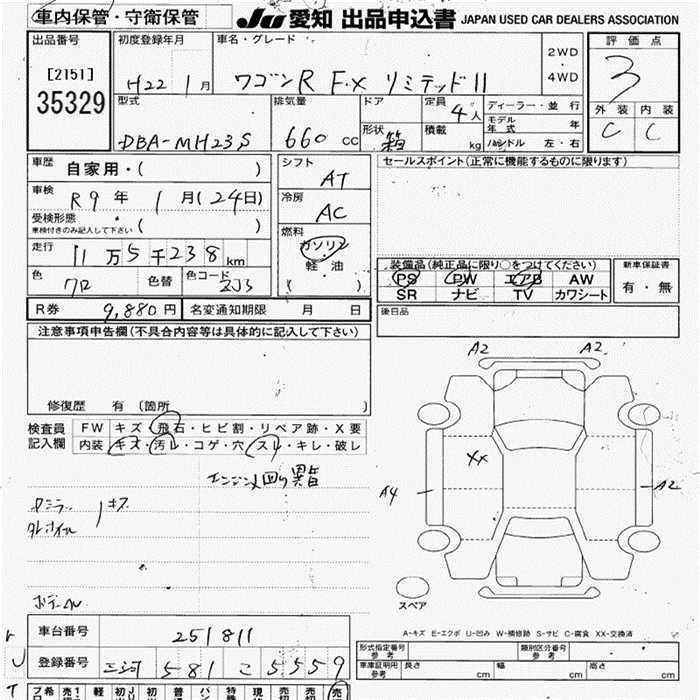 | FX LIMITED | DBA-MH23S | K6A | FF | CVT | 658cc | 54ps(40kW)/6500rpm | AИ-92 | 1 212 750 | |