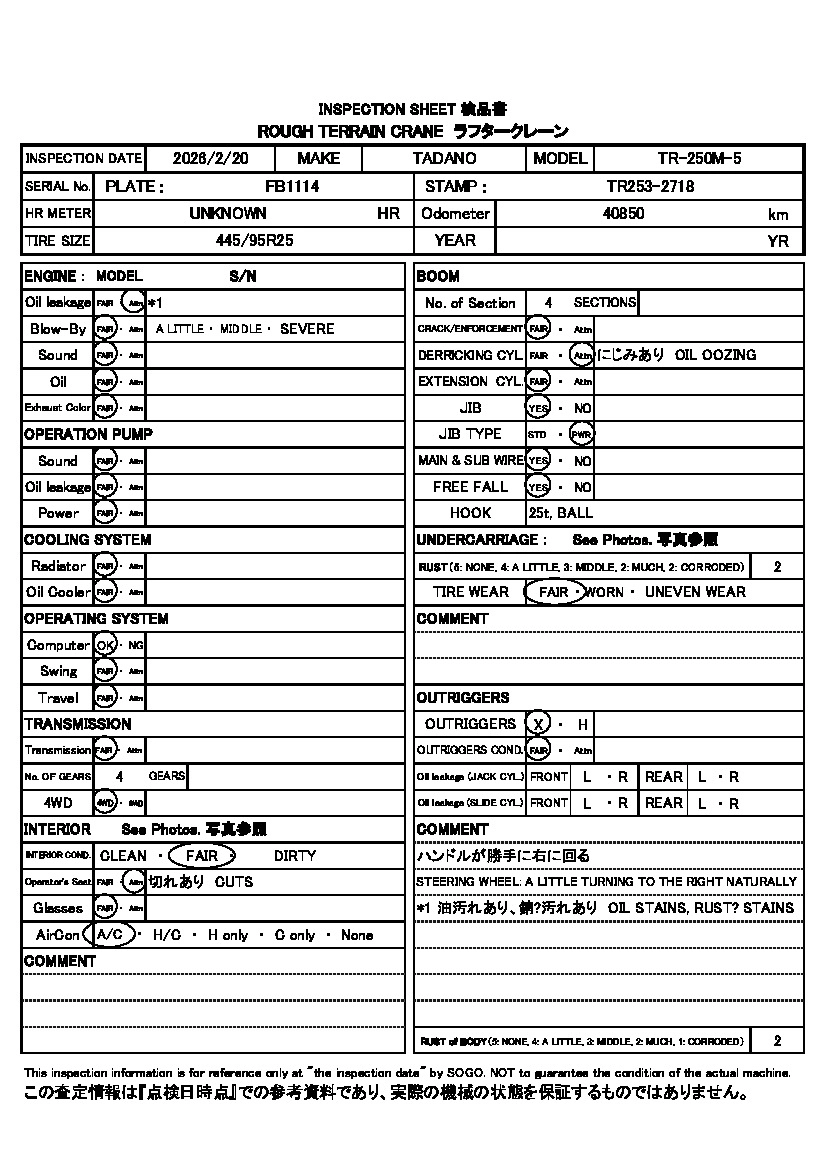 Год выпуска1995 КузовTR250M-5 Комплектация CRANE
