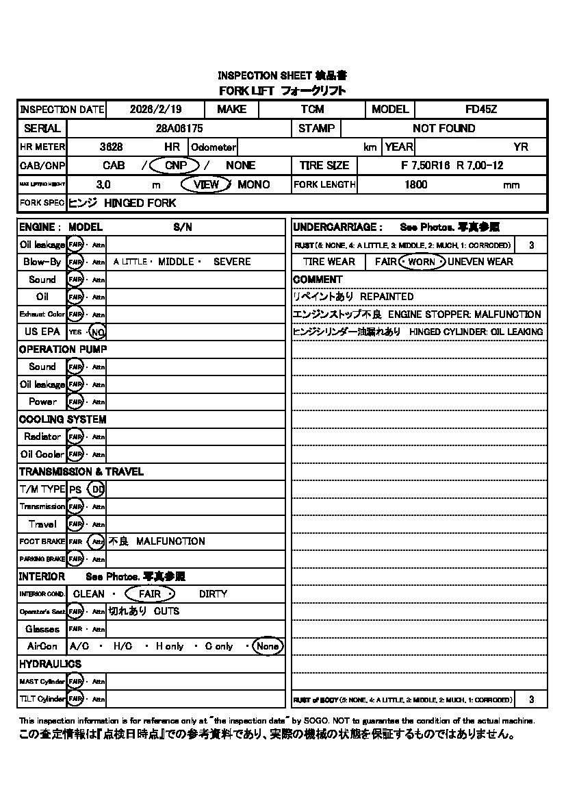 КузовFD45Z Комплектация FORKLIFT