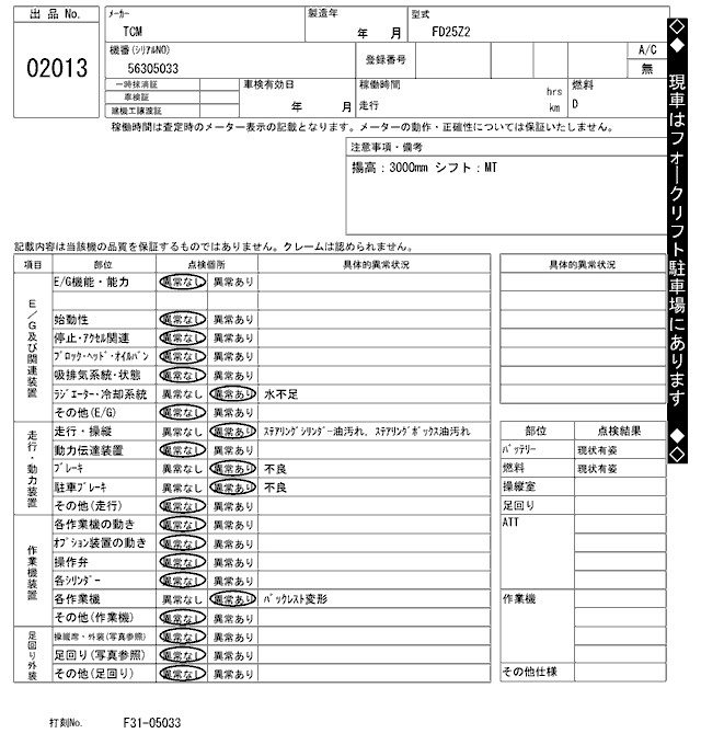 КузовFD25Z2 Комплектация FORKLIFT