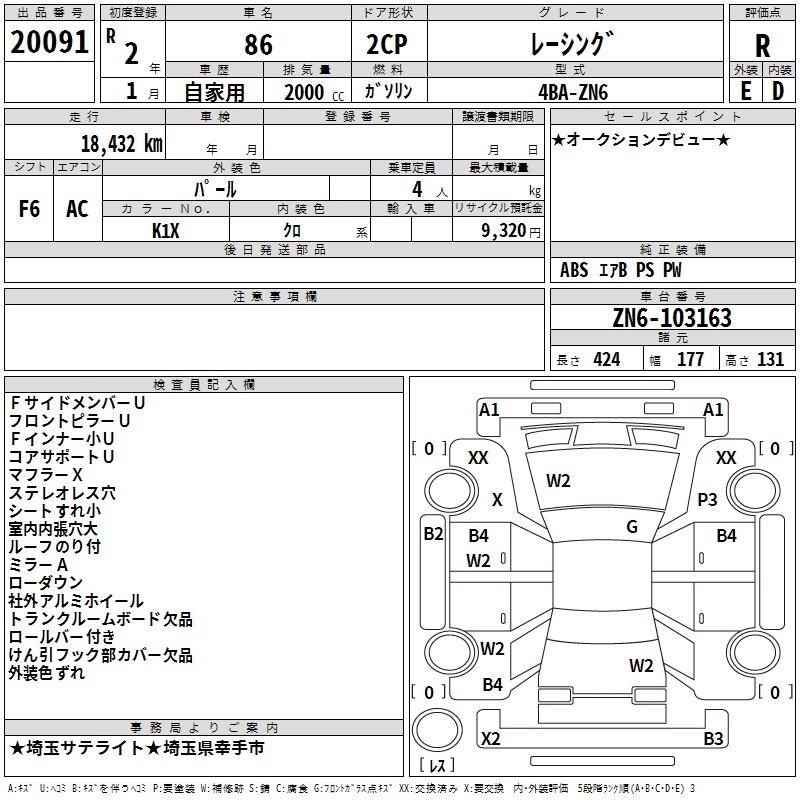 | GT BLACK LIMITED | 4BA-ZN6 | FA20 | FR | 6AT | 1998cc | 200ps(147kW)/7000rpm | AИ-95 | 3 586 000 | |