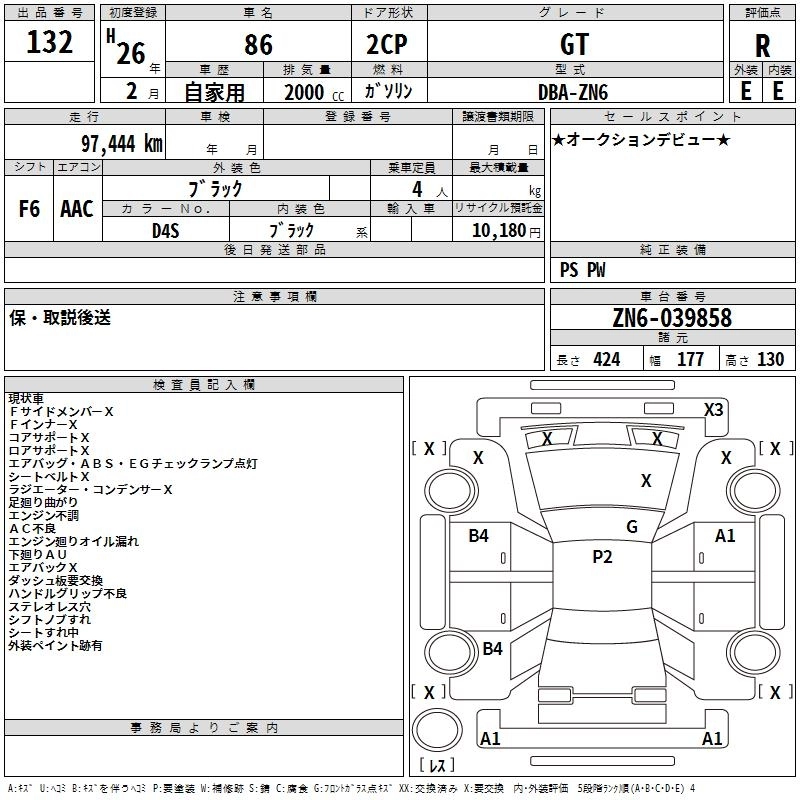 | 14R-60 | DBA-ZN6 | FA20 | FR | 6MT | 1998cc | 200ps(147kW)/7000rpm | AИ-95 | 6 300 000 |