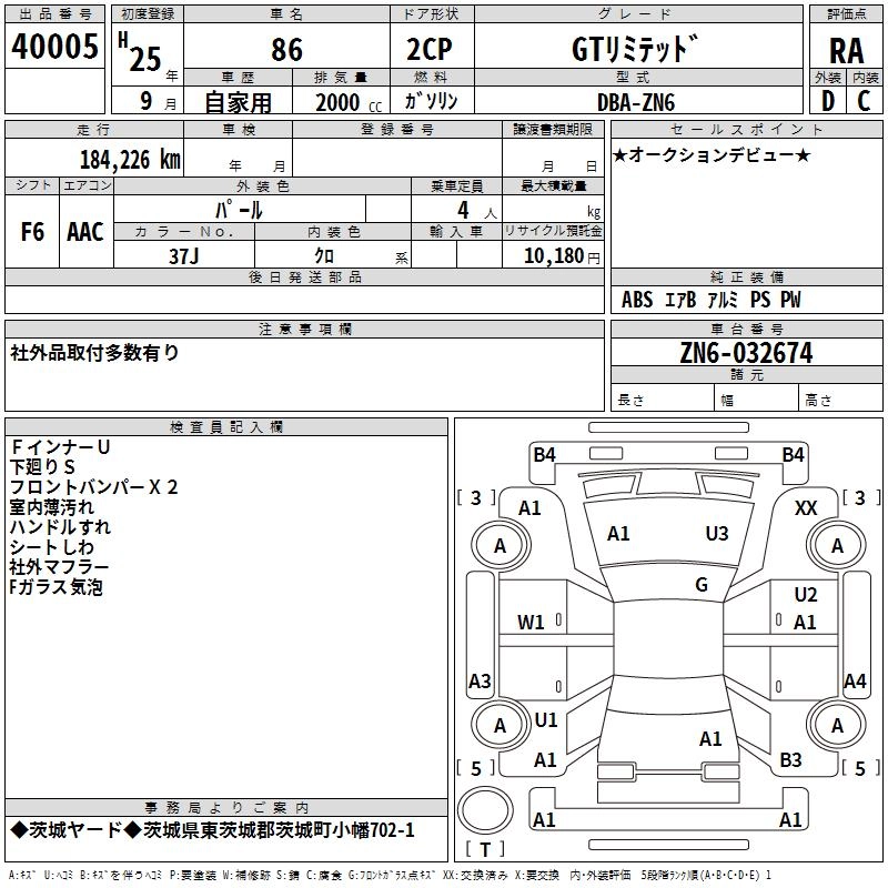 | G | DBA-ZN6 | FA20 | FR | 6AT | 1998cc | 200ps(147kW)/7000rpm | AИ-95 | 2 480 000 | |