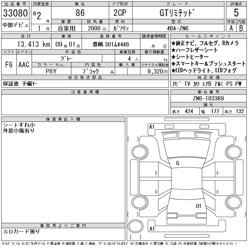 | GT BLACK LIMITED | 4BA-ZN6 | FA20 | FR | 6AT | 1998cc | 200ps(147kW)/7000rpm | AИ-95 | 3 586 000 | |