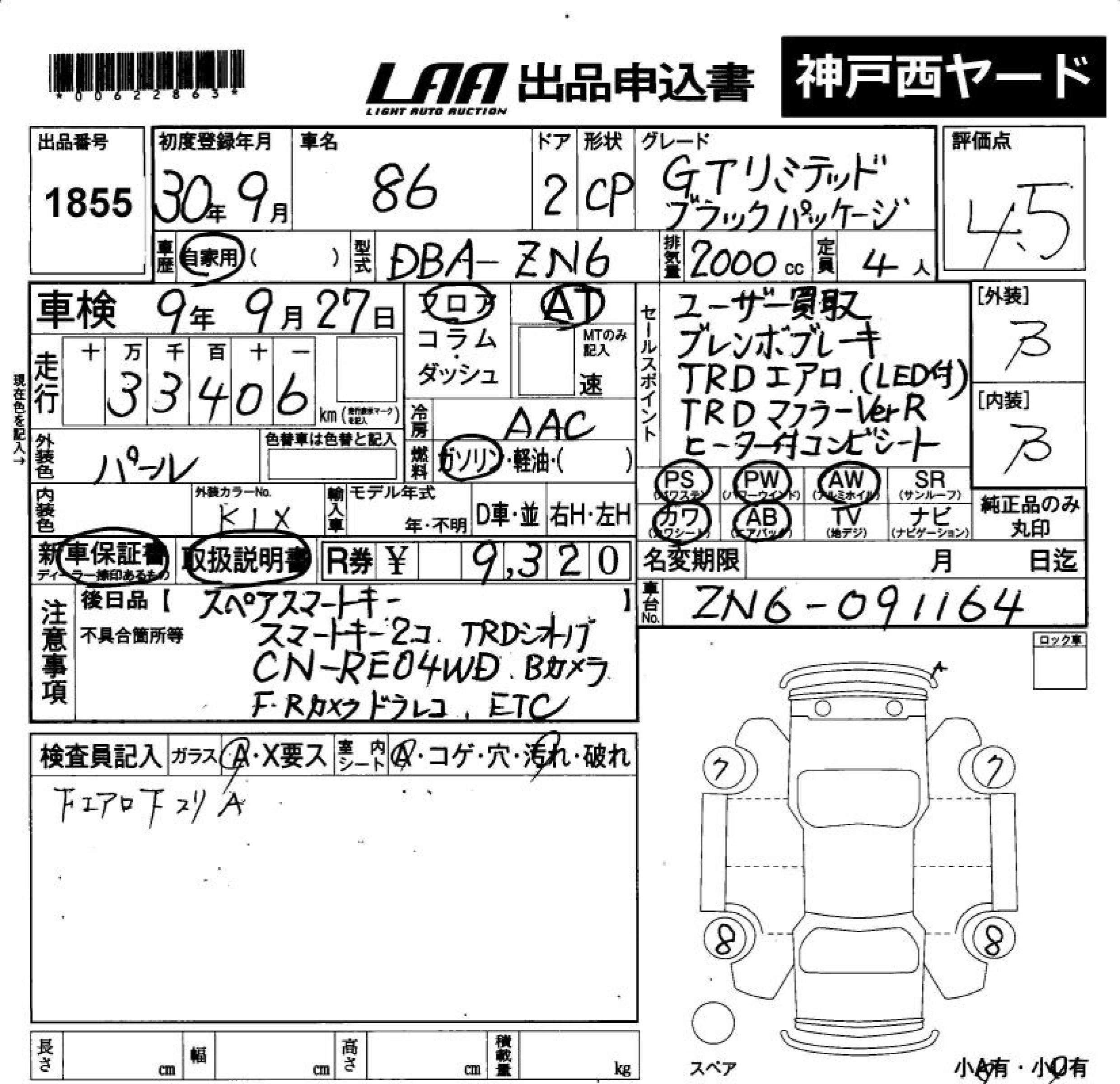 | GT LIMITED BLACK PACKAGE | DBA-ZN6 | FA20 | FR | 6MT | 1998cc | 207ps(152kW)/7000rpm | AИ-95 | 3 356 640 | |