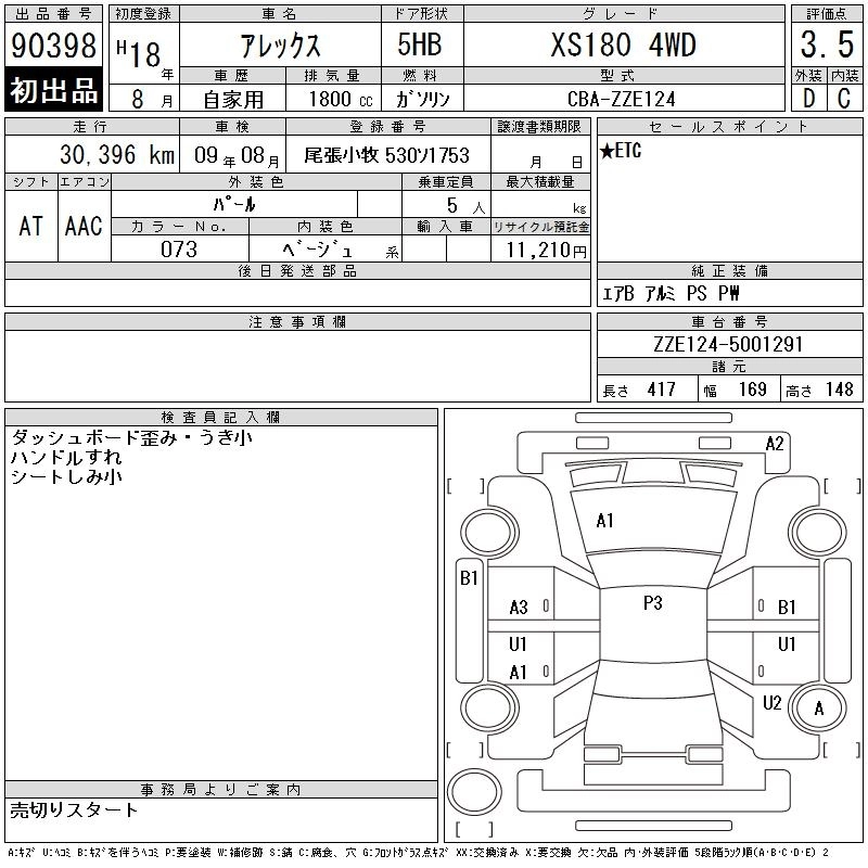 Статус выставлен на аукцион Лот 90398 Аукцион CAA Chubu Дата аукциона 18.03.2026