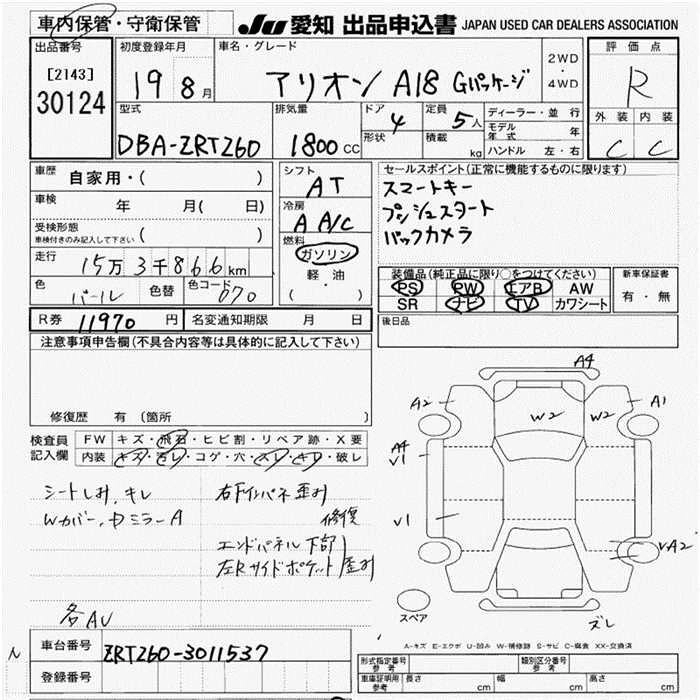 | A18 | DBA-ZRT260 | 2ZR-FE | FF | CVT | 1797cc | 136ps(100kW)/6000rpm | AИ-92 | 1 890 000 | |