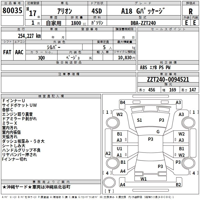 | A18 G PACKAGE PREMIUM | CBA-ZZT245 | 1ZZ-FE | Full-time 4WD | 4AT | 1794cc | 125ps(92kW)/6000rpm | AИ-92 | 2 173 500 | |