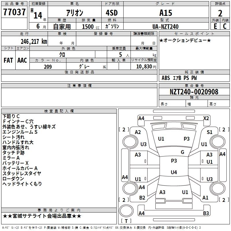 TOYOTA ALLION 2002 г., лот № 77037