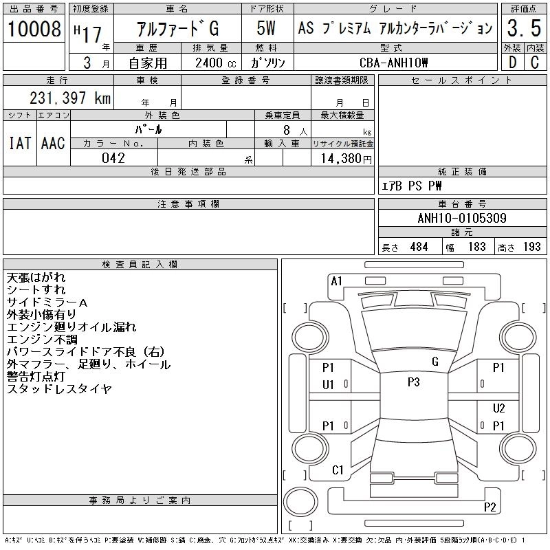 TOYOTA ALPHARD G 2005 г., лот № 10008