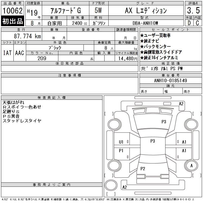 TOYOTA ALPHARD G 2007 г., лот № 10062