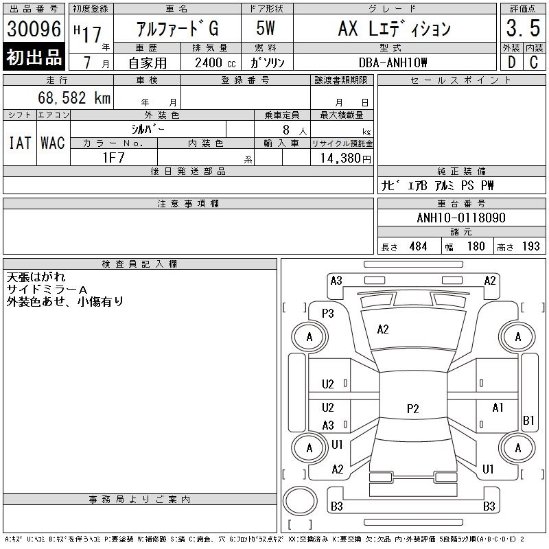 | AX L EDITION | DBA-ANH10W | 2AZ-FE | FF | 4AT | 2362cc | 159ps(117kW)/5600rpm | AИ-92 | 3 070 000 | |