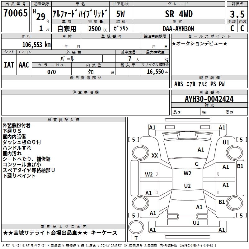 TOYOTA ALPHARD HYBRID 2017 г., лот № 70065