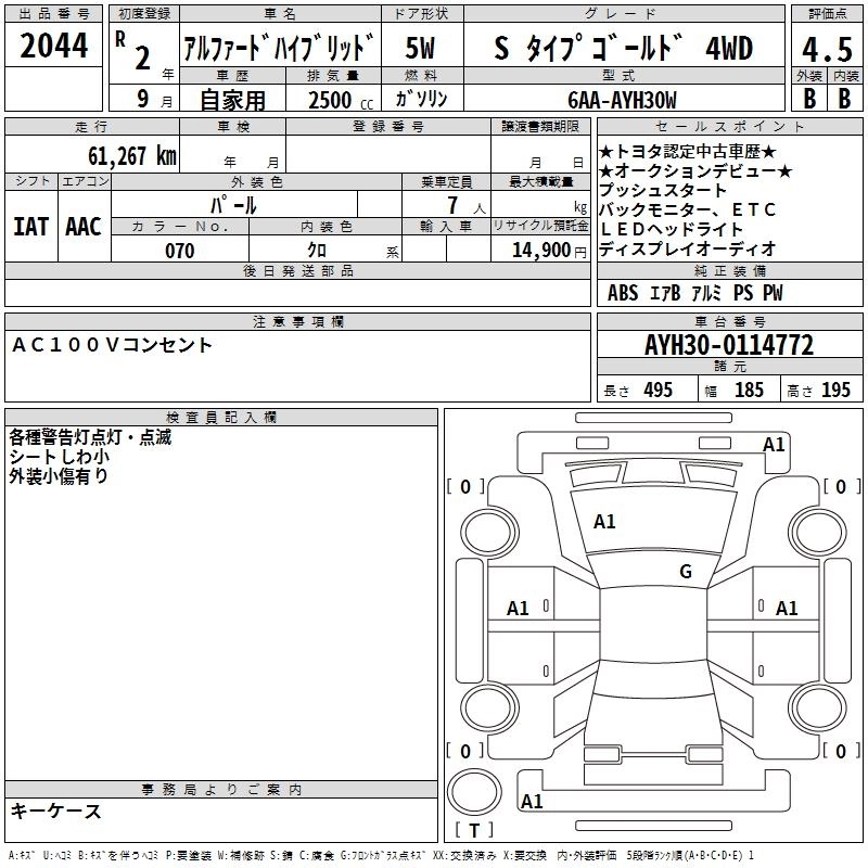 G 6AA-AYH30W 2AR-FXE Full-time 4WD CVT 2493cc 152ps(112kW)/5700rpm AИ-92 5 344 000