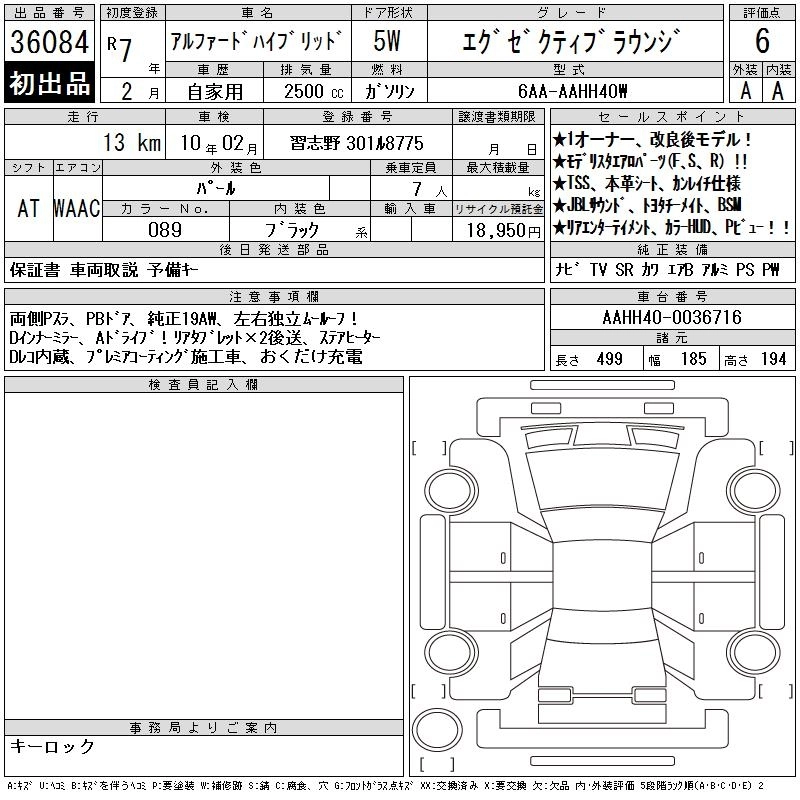 TOYOTA ALPHARD HYBRID 2025 г., лот № 36084