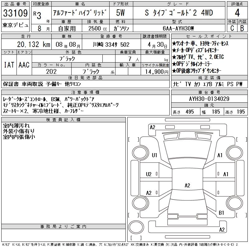 TOYOTA ALPHARD HYBRID 2021 г., лот № 33109