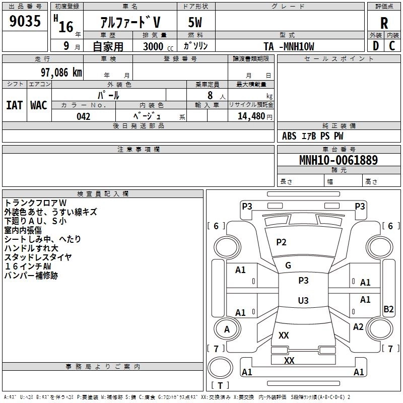 | AX TRESOR ALCANTARA VERSION | CBA-ANH15W | 2AZ-FE | Full-time 4WD | 4AT | 2362cc | 159ps(117kW)/5600rpm | AИ-92 | 3 234 000 | |