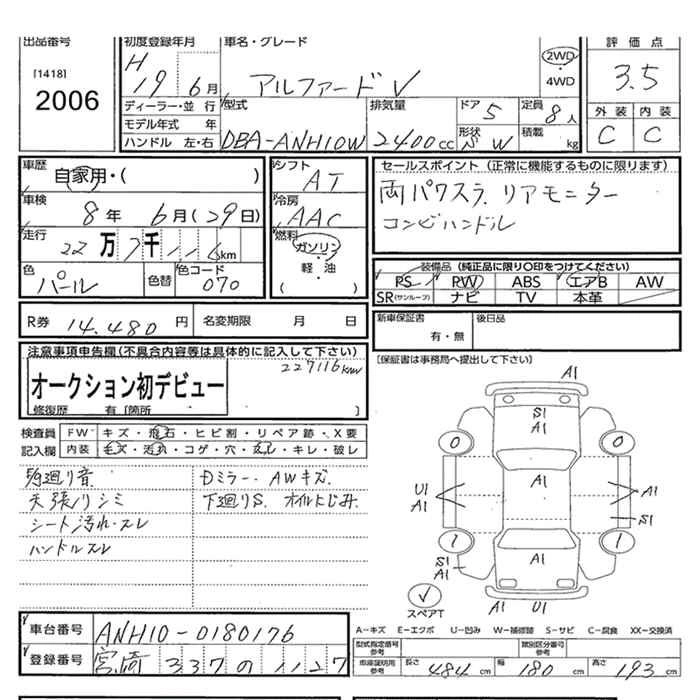 TOYOTA ALPHARD V 2007 г., лот № 2006