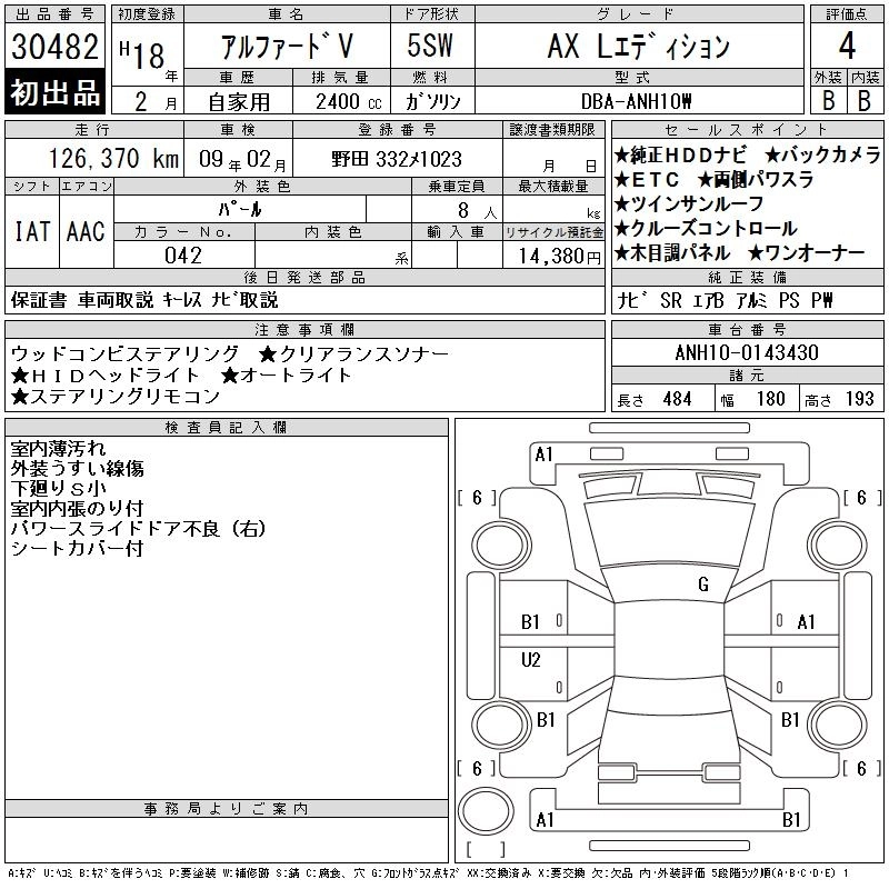 | AS PLATINUM SELECTION | DBA-ANH10W | 2AZ-FE | FF | 4AT | 2362cc | 159ps(117kW)/5600rpm | AИ-92 | 3 297 000 |