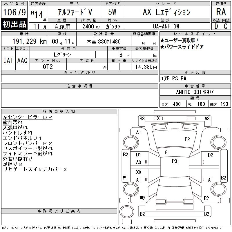| AX L EDITION | UA-ANH10W | 2AZ-FE | FF | 4AT | 2362cc | 159ps(117kW)/5600rpm | AИ-92 | 3 180 000 | |