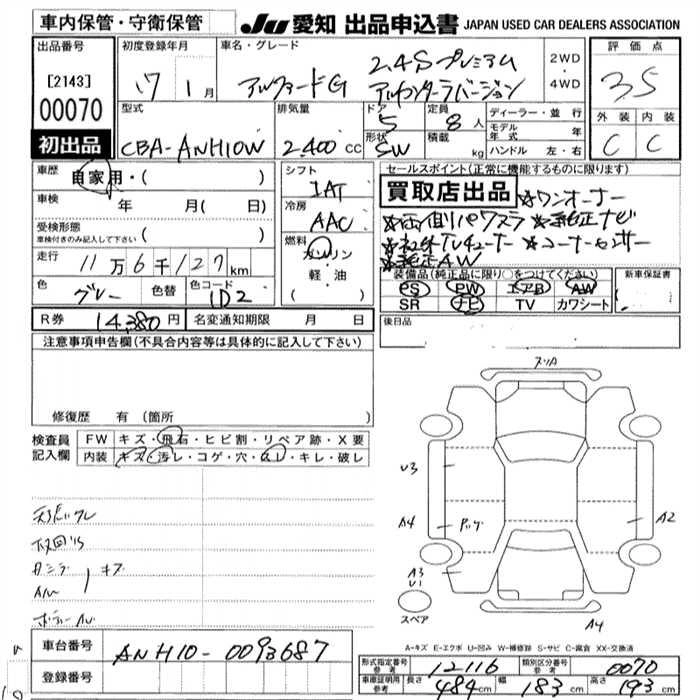 Год выпуска2005 Пробег 116 000 км КузовANH10W КомплектацияG)AS PREMIUM ALCANTA VER