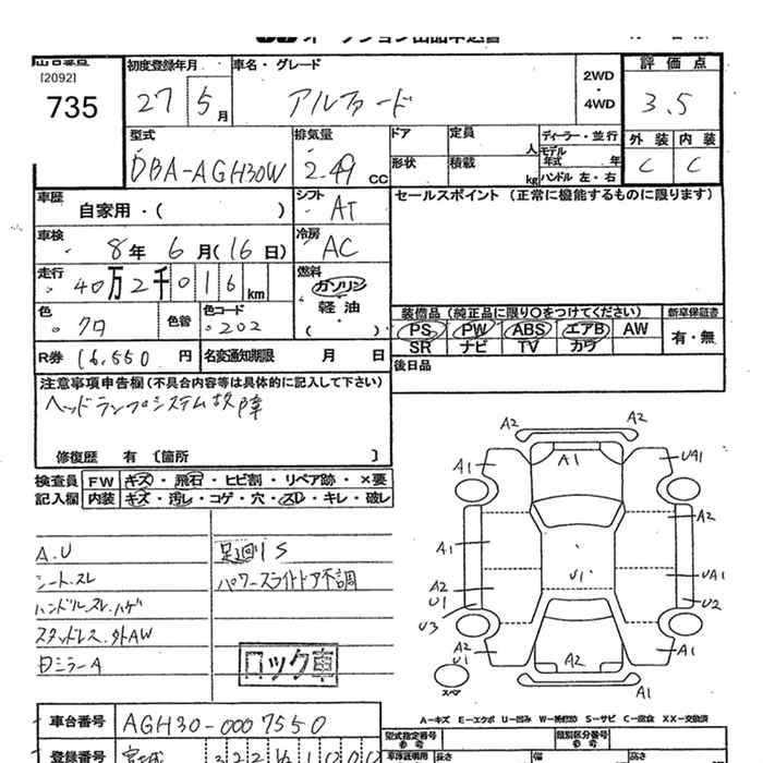 | 2.5G | DBA-AGH35W | 2AR-FE | Full-time 4WD | CVT | 2493cc | 182ps(134kW)/6000rpm | AИ-92 | 4 245 382 | |