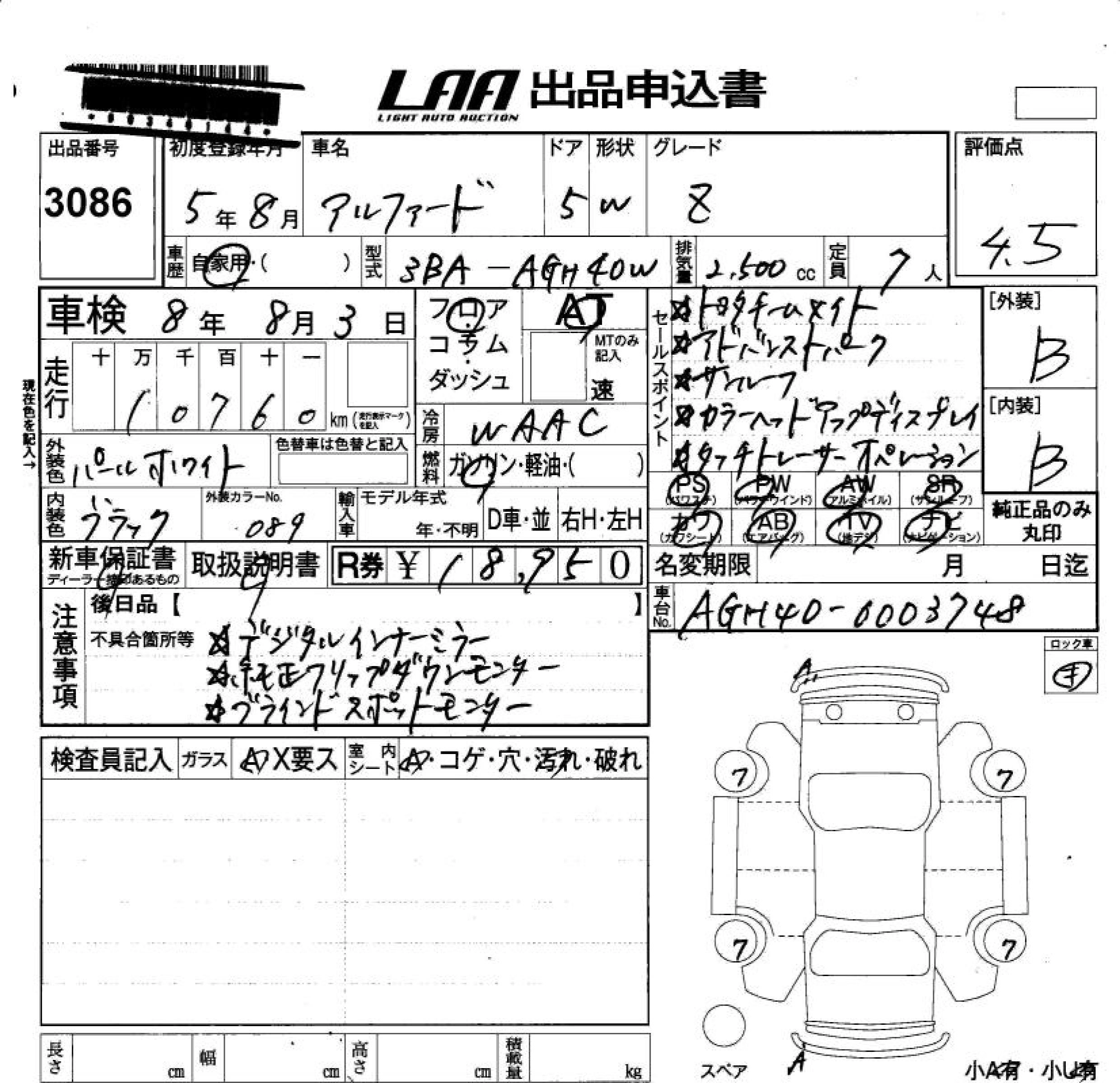 Статус продан Лот 3086 Аукцион LAA Okayama Дата аукциона 30.01.2026