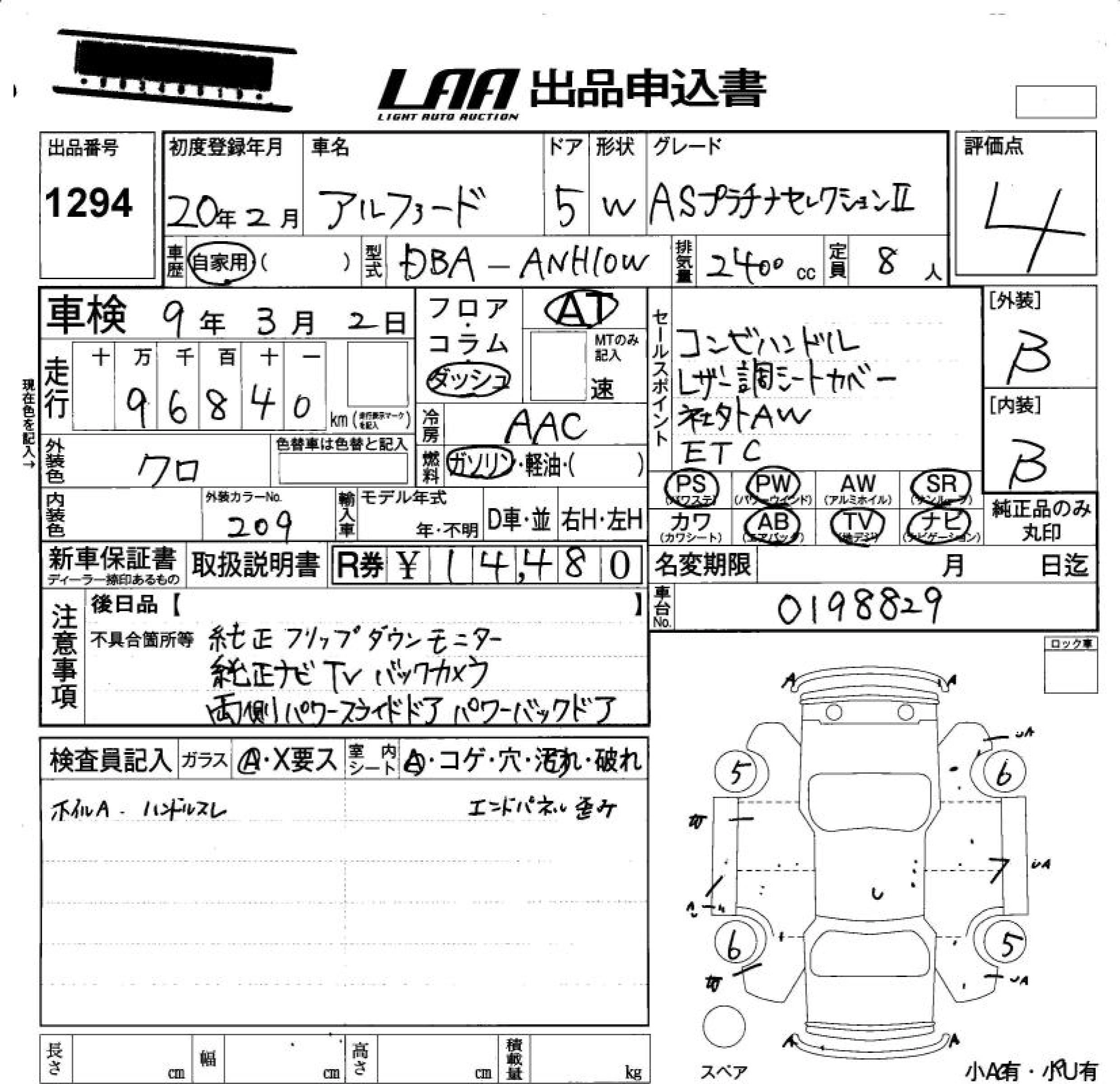 TOYOTA ALPHARD 2008 г., лот № 1294