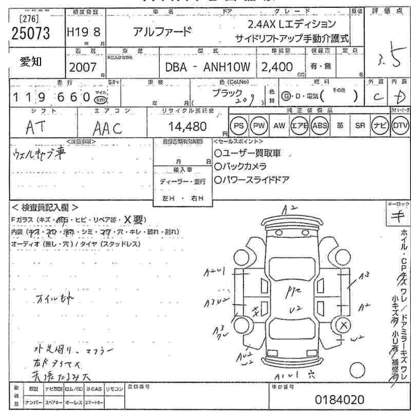 Год выпуска2007 Пробег 120 000 км КузовANH10W Комплектация2.4AX L EDITION # SIDE LIFT UP MANUAL