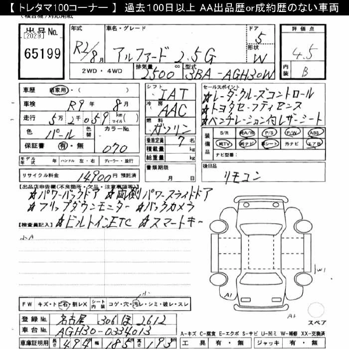TOYOTA ALPHARD 2020 г., лот № 65199