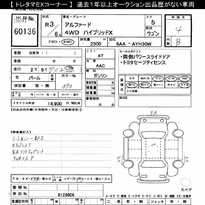 TOYOTA ALPHARD 2021 г., лот № 60136