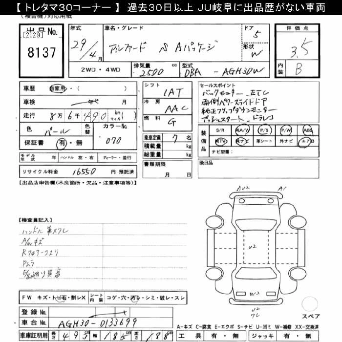 TOYOTA ALPHARD 2017 г., лот № 8137