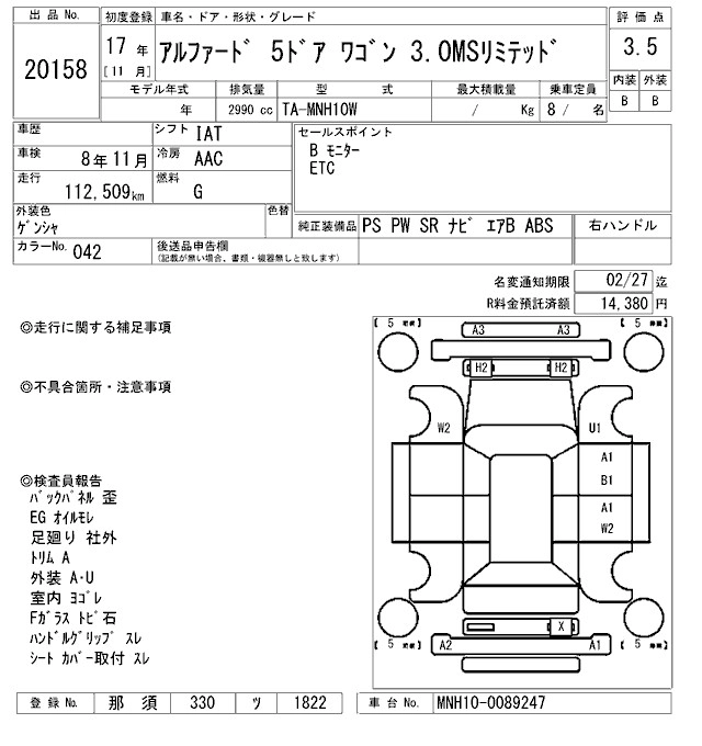 TOYOTA ALPHARD 2005 г., лот № 20158