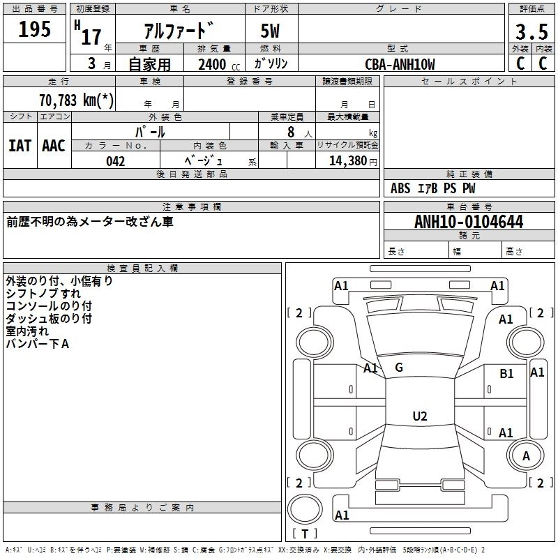 TOYOTA ALPHARD 2005 г., лот № 195