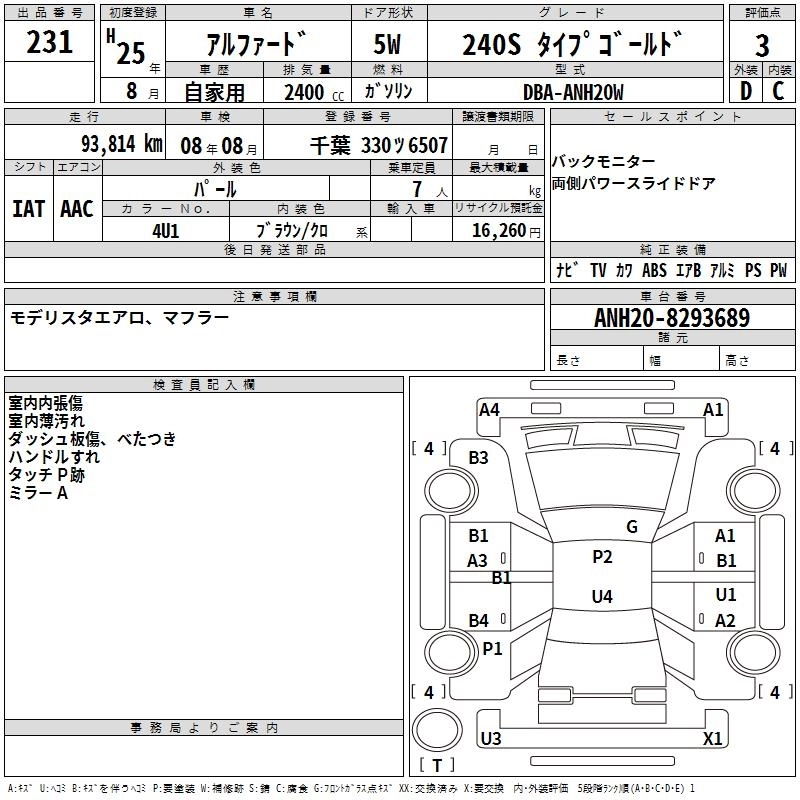 | 240S TYPE GOLD II | DBA-ANH25W | 2AZ-FE | Full-time 4WD | CVT | 2362cc | 170ps(125kW)/6000rpm | AИ-92 | 3 879 000 | |