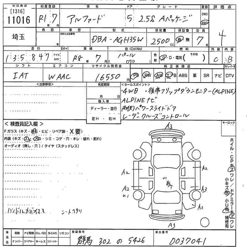 | 2.5S A PACKAGE | DBA-AGH35W | 2AR-FE | Full-time 4WD | CVT | 2493cc | 182ps(134kW)/6000rpm | AИ-92 | 4 253 700 | |