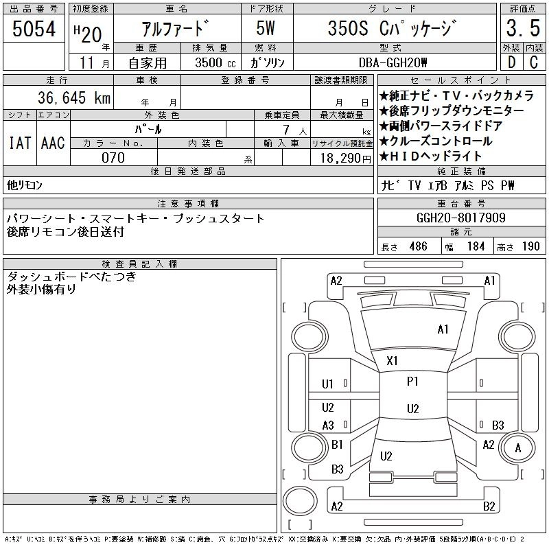| 350S C PACKAGE | DBA-GGH25W | 2GR-FE | Full-time 4WD | 6AT | 3456cc | 280ps(206kW)/6200rpm | AИ-95 | 4 370 000 | |