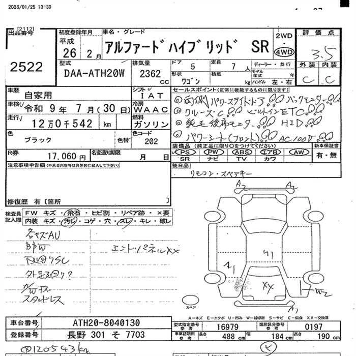 | 240G | DBA-ANH25W | 2AZ-FE | Full-time 4WD | CVT | 2362cc | 170ps(125kW)/6000rpm | AИ-92 | 3 916 800 | |