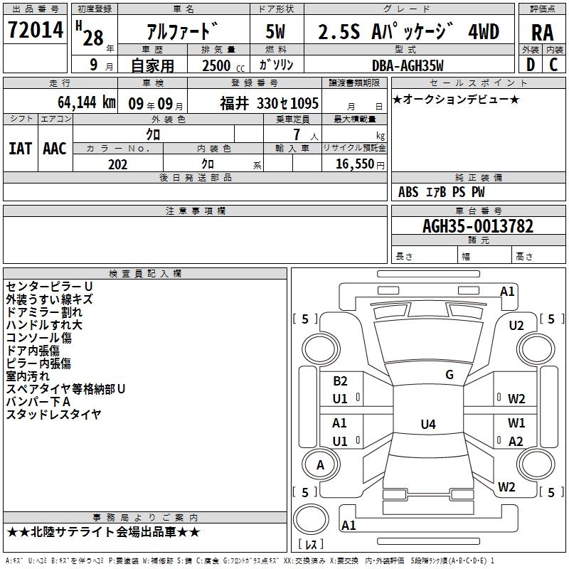 | 3.5SA TYPE BLACK | DBA-GGH35W | 2GR-FE | Full-time 4WD | 6AT | 3456cc | 280ps(206kW)/6200rpm | AИ-95 | 4 511 455 | |