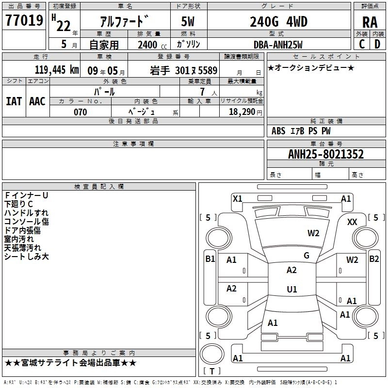 TOYOTA ALPHARD 2010 г., лот № 77019