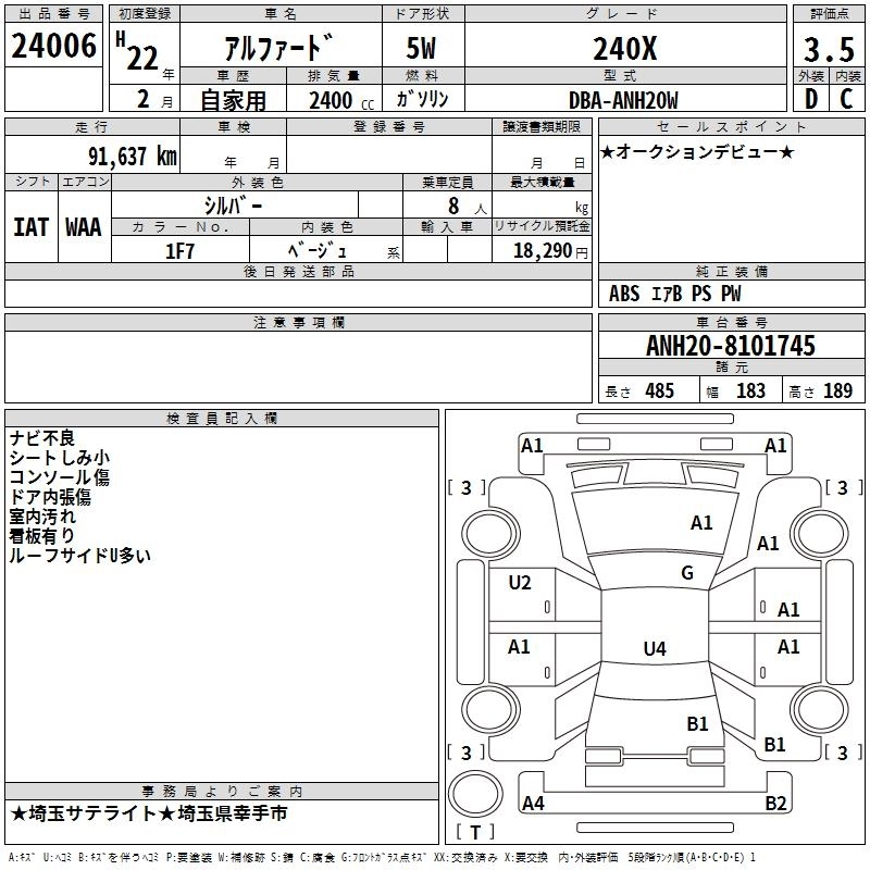 | 240S PRIME SELECTION II TYPE GOLD | DBA-ANH25W | 2AZ-FE | Full-time 4WD | CVT | 2362cc | 170ps(125kW)/6000rpm | AИ-92 | 3 740 000 | |