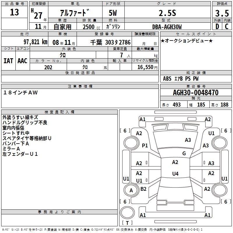 | 2.5G | DBA-AGH35W | 2AR-FE | Full-time 4WD | CVT | 2493cc | 182ps(134kW)/6000rpm | AИ-92 | 4 245 382 | |