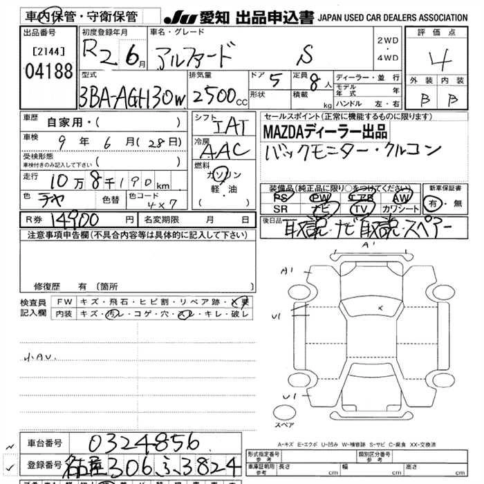 2.5S C PACKAGE 3BA-AGH35W 2AR-FE Full-time 4WD CVT 2493cc 182ps(134kW)/6000rpm AИ-92 4 918 000