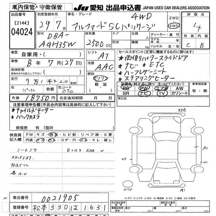 TOYOTA ALPHARD 2017 г., лот № 4024