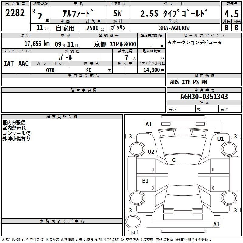 | 2.5S TYPE GOLD | 3BA-AGH30W | 2AR-FE | FF | CVT | 2493cc | 182ps(134kW)/6000rpm | AИ-92 | 4 240 000 |