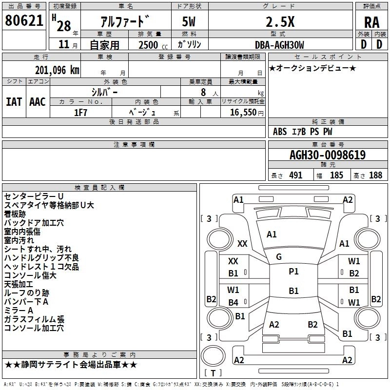 | 2.5S A PACKAGE TYPE BLACK | DBA-AGH35W | 2AR-FE | Full-time 4WD | CVT | 2493cc | 182ps(134kW)/6000rpm | AИ-92 | 4 176 655 | |