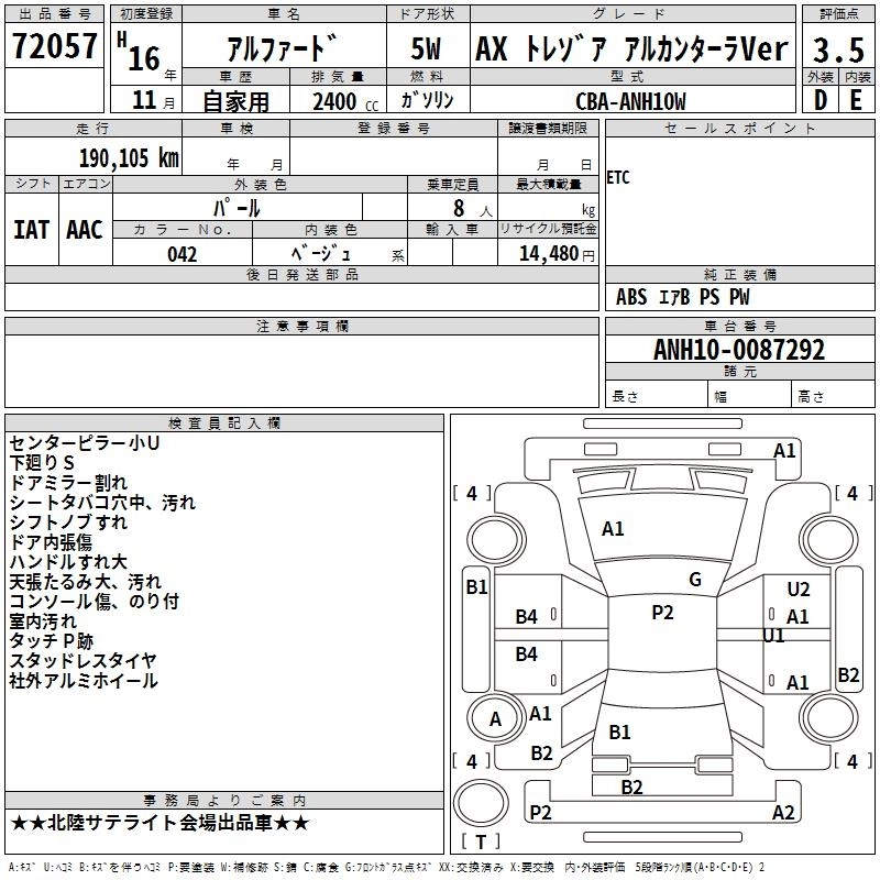TOYOTA ALPHARD 2004 г., лот № 72057